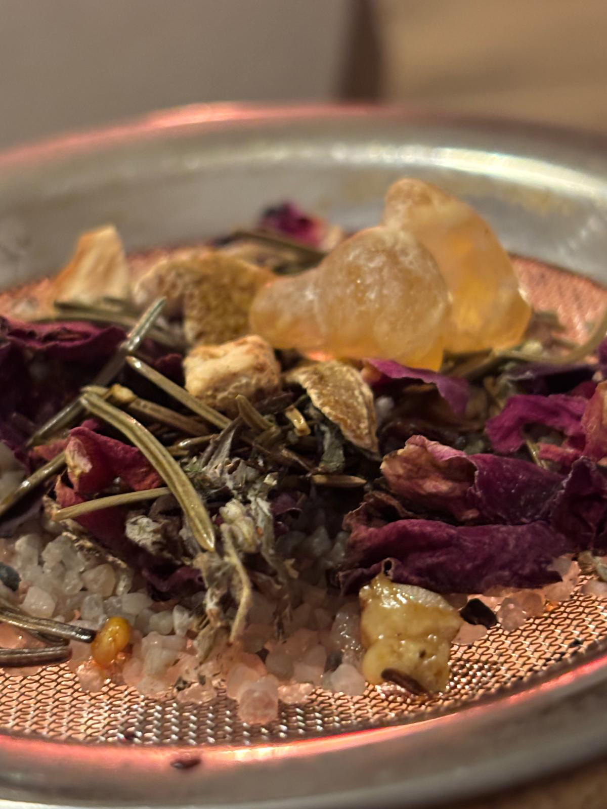 Auf das Sieb, groben Räuchersand und unser Osttiroler Heilräucherwerk geben.