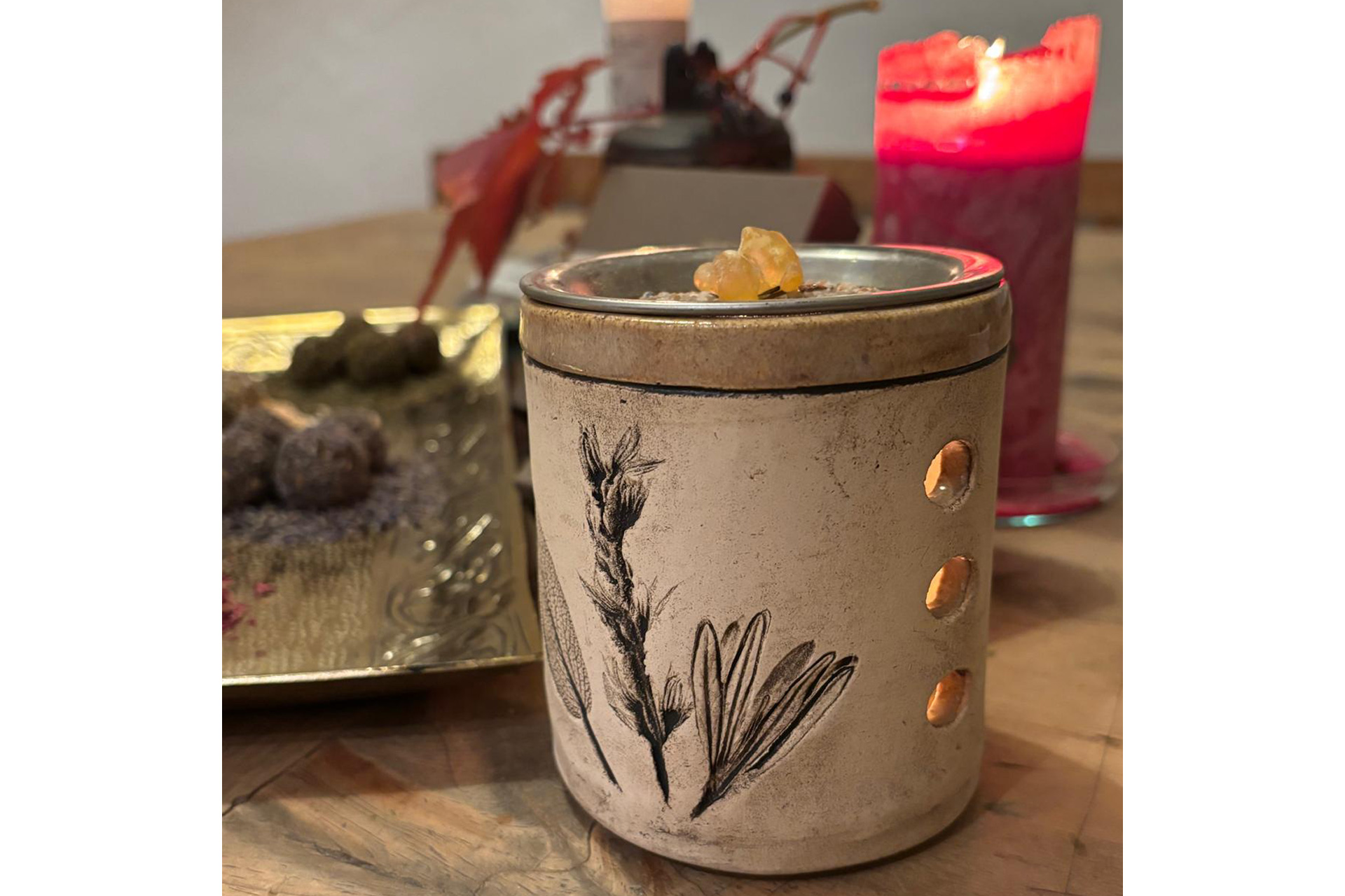 Bei jedem einzelnen Stück werden die frischen Kräuter aus Matrei auf den Ton aufgelegt und gebrannt. Daher ist jedes Stövchen ein Unikat.