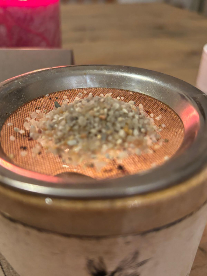 Auf das Sieb, groben Räuchersand und unser Osttiroler Heilräucherwerk geben.